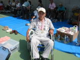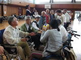 | 障害者・高齢者が各地区から集まり、運動やゲームなどをして楽しい汗をかいた一日でした。 茎身協はゲーム参加のかたわら、タオルの販売も行いました。 |