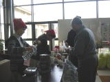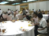 ![]() まずは腹ごしらえ ミーティング室にて |