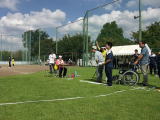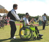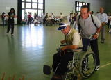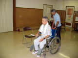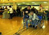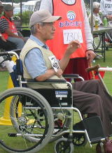 ![]() 車椅子スラロームに参加 竹原君 |