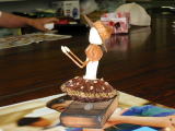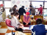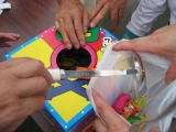 昔なつかしい万華鏡、のぞくとキラキラきれいな色の世界が広がり、夢のよう。与えられた紙などを、サイズに合わせて切ったり貼ったり、あまり難しくなく全員作品を完成させました。お茶で休憩のあとは、細長い風船で白鳥やプードルなどを作りました。 |