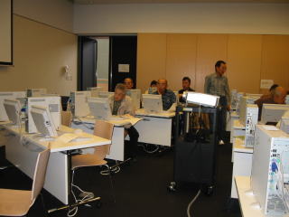 ![]() パソコン室全景。 真ん中にプロジェクター |