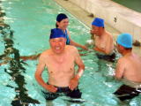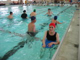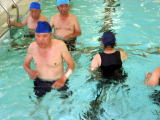 | 6年ぶりに水の集いに会として参加しました。初参加・初水着の方もおられたようです。準備運動に始まり、水中をゆっくり前進・笛の合図で回れ右!自由に水中ウォーキング・宝探しなど、指導員のご指導で楽しく参加できました。水中では比較的楽に歩行できるので、とてもいいトレーニングになります。 | ||||
