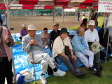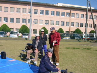 ![]() 応援席で談笑 岡野(光)・葛屋・山口・長島各氏 |