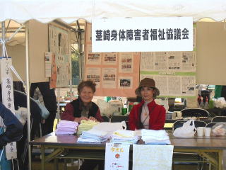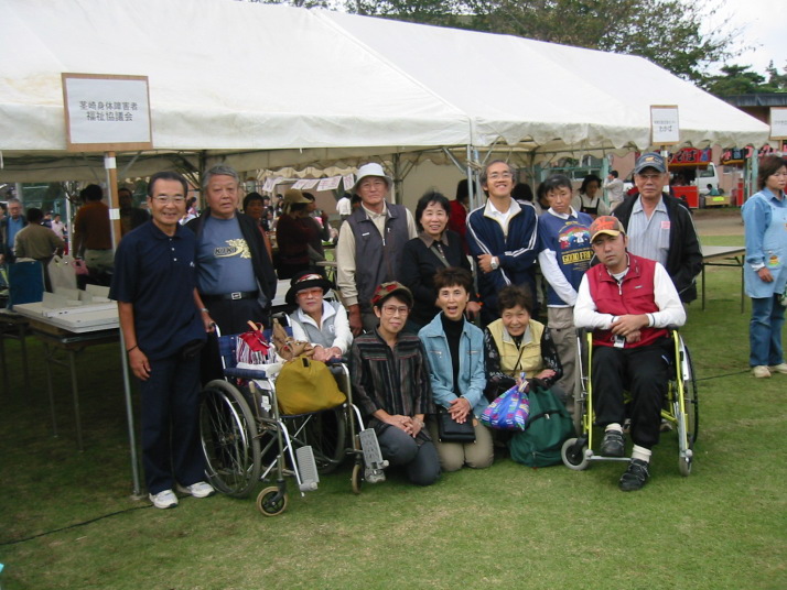| 障害者、高齢者福祉への市民意識を高めるため盛大に開催されました。 心配された天候も午後は晴れて、イベントのアトラクション・レクリエーション・スポーツを楽しみました。 茎身障協は例年篤志家から提供頂いているタオルを会員の奥様、お母さんのご協力を得て完売しました。 また、「茎身障協ホームページの紹介」「会報:ゆうあい」などの活動状況をPRしました。 |