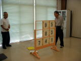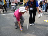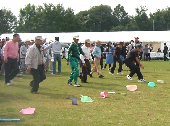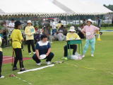 ![]() 玉入れ 手前のバケツに玉を投入れるが、思うようにいかない。 |