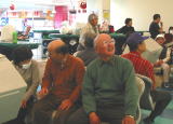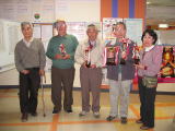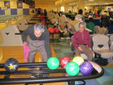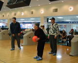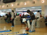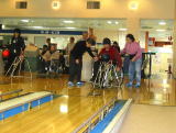 | 車椅子でもそのままゲームが出来るスロープ・重いボールを投げられない人のためのスライダー・ガーターガードなど、障害者・高齢者に優しいボウリング施設でした。ゲームの後は隣室のコミュニティー室にて昼食・成績発表などを行いました。 成績は、優勝:成島政次さん、準優勝:葛屋傑さん、3位:木嶋保子さん、ブービー賞:犬田豊さんでした。 |