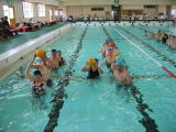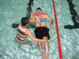 | やっと本格的な夏を向かえた暑い一日、友部プールで障害者の水の集いが行われました。 童心に返って水遊び・ウォーキング・ゲームに興じました。 準備体操・ボールリレーゲーム・自由ウォーキング・競泳など。 初めてプールに入った人もインストラクターの指導でやっと水に慣れ親しむ事が出来ました。 |