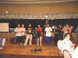 | あいにくの小雨の中、送迎バスの各地巡回でみんなレイクサイドに集合。 総勢30名(1人キャンセル)の参加、新田会長の挨拶・飯泉副会長の音頭で乾杯。 ウクレレと歌からはじまりカラオケへと宴が進みました。 最後は小川さんの挨拶で閉会となりました。 |