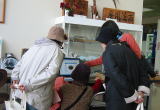 ![]() トレードマークのスカーフをかぶり、ちょっとした喫茶店 |