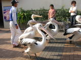 ![]() 餌を求めてバスに群がる |