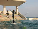 ![]() シャチのパフォーマンスに魅了 |