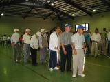 | 朝からどしゃ降りの雨にもかかわらず時間厳守で集合、予定時間に乗車出発できました。 雨天のため体育館で室内ゲームや風船バレーなどを楽しみ、結果第4位の成績でした。 福祉バス送迎のお陰で参加者15名内8名が宿泊出来ました。 宿泊は今まで役員のみだったものが、一般会員も一緒に他団体との交流が出来、有意義でした。 |