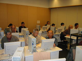 | 希望者が多く、パソコン室は満員御礼。 先輩が初心者を後押し・応援して、誰もが先生の「すずめの学校」です。 |