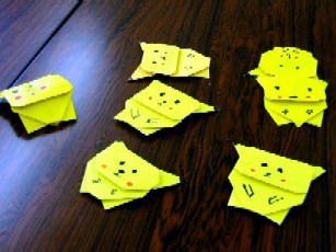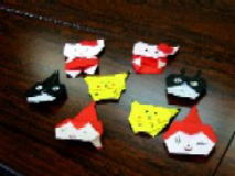楽しいマンガのキャラクター、ピカチュウやバイキンマン、キティーちゃんなどを折り紙で作りました。