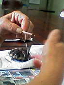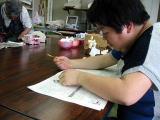 始めに、ティッシュをつまようじに巻き付け、顔を作ります。