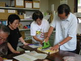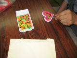 それをアイロンペーパーの上からアイロンし、ビーズが熱で密着すれば完成。