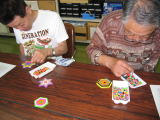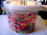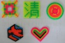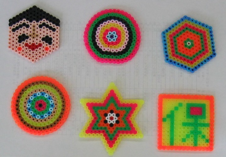 カラフルなビーズ(円筒形)をプレートの突起に差込み、自由に模様を表現する。
