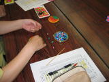 小さいビーズは、爪楊枝やピンセットでつまむと作業がやりやすい。