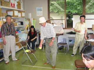 雨のため参加者が少ないが、おおいに楽しめました。 ボードの数字を合計し、一番多い人に優勝を、最下位から二番目をブービー賞に。 賞品として自動販売機からジュースを進呈することに。 皆さん2本のジュースをお目当てに奮闘しましたよ。 協力:木村さん