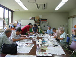 講師があらかじめ用意したカットを白い紙に写しとる。