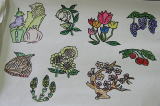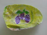 紙に絵を書きボンドで貼り付け、最後にニスを塗ってつやを出し完成。