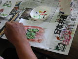 絵の具・クレヨンなどで色付け・輪郭・回りの背景などを塗る。