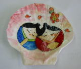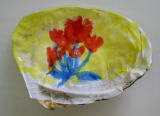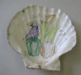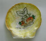 ホタテ貝は形が丸く平らなので紙が貼りやすかった。