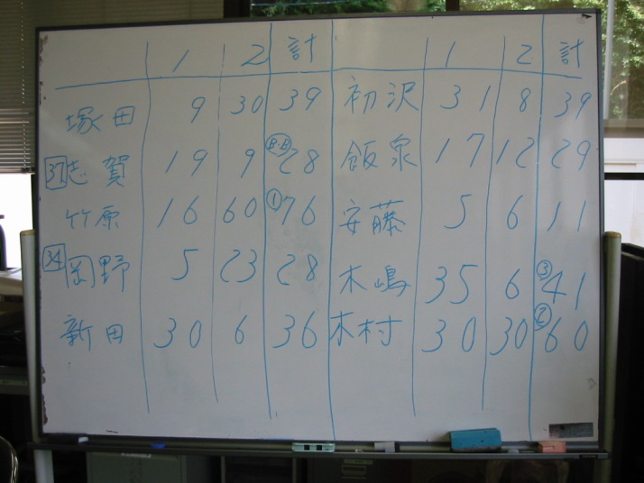 最高点は竹原父さん76点・ブービー賞は志賀さん28点でした。