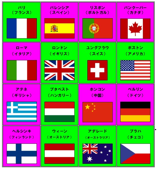 @16都市のうち、どちらでも好きな所にコインを置いて下さい