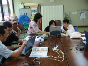 テンプレートから作りたいスタイルを選び出し、パソコン経験者と組みになって、まずは作成開始。